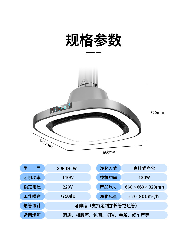 - 直排吸煙凈化燈強勁環(huán)吸四邊燈光D8-W